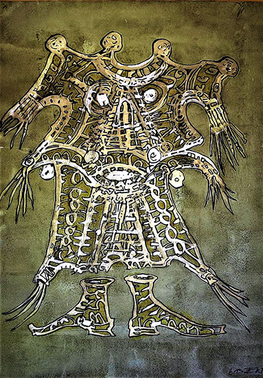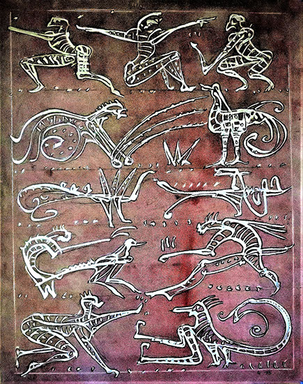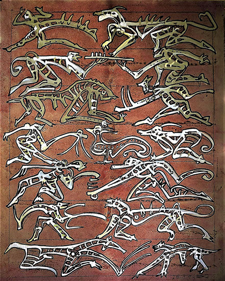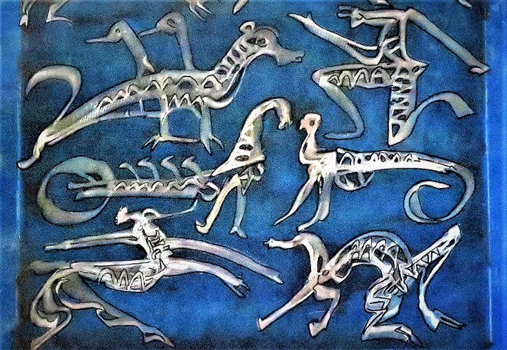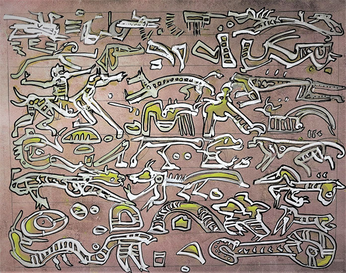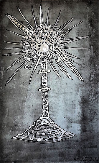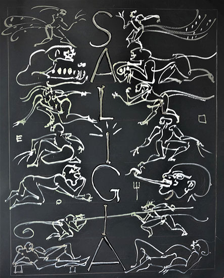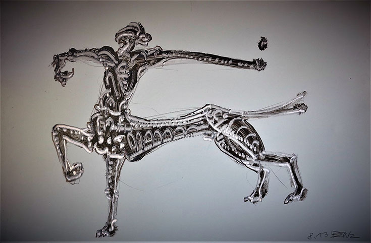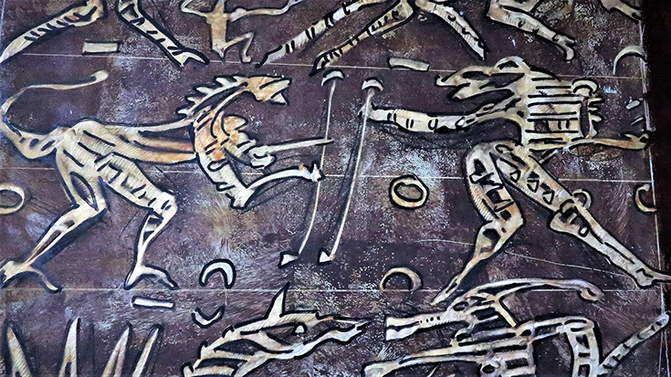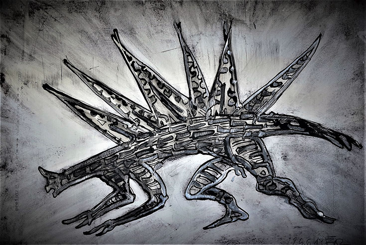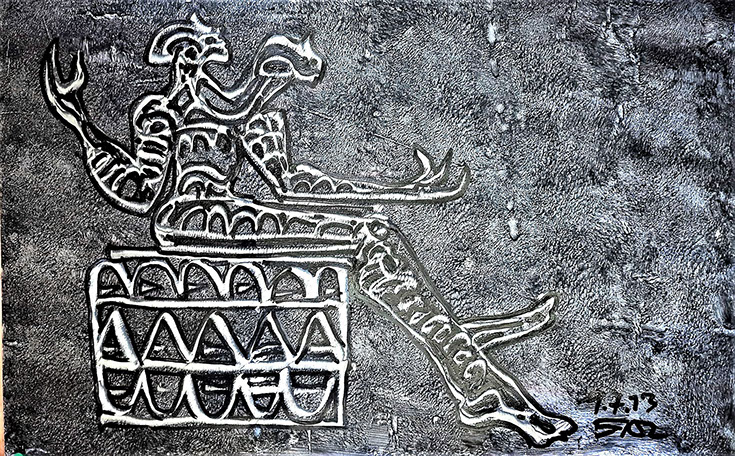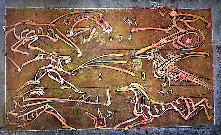 Auf beschichtete und lasierte Aluminiumplatten werden Motive gezeichnet, die mit einem Winkelschleifer ausgeführt werden, sodass die Linien als blankes Metall zutage treten. Durch Lichteinstrahlung entstehen verschieden starke Reflexe, welche die Zeichnungen je nach Blickwinkel kinetisch beleben.