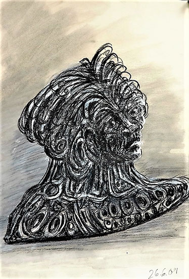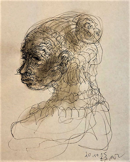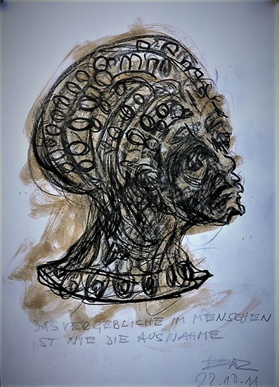 Imaginäre Portraits sind hölzerne Eisen: diese Köpfe sind keine Abbildungen von real existierenden, und doch sind sie wirklich. Sie sind in ihrer Einmaligkeit keine Kopien, und also unvergleichlich. Was der Kopf zum Ausdruck bringt, welche Wesenheit er enthüllt, kann die Armut der Sprache nicht beschreiben, aber ein sensibler Betrachter gut verstehen.