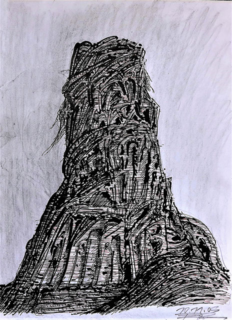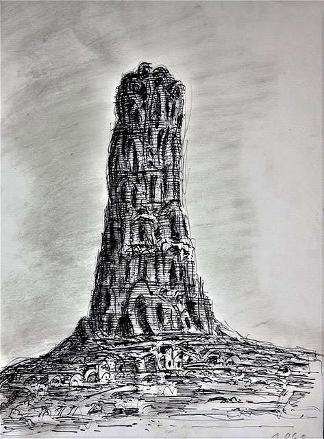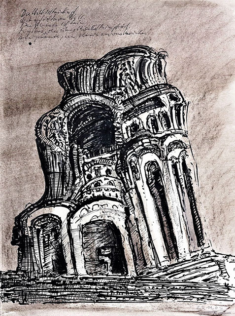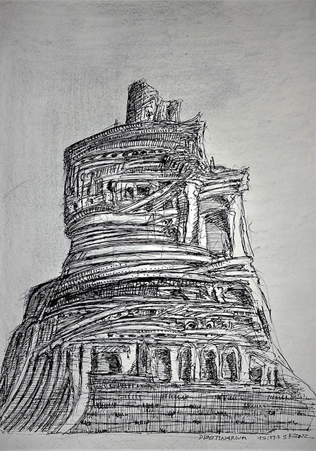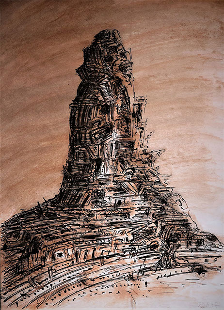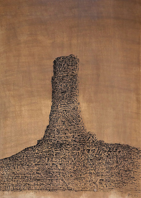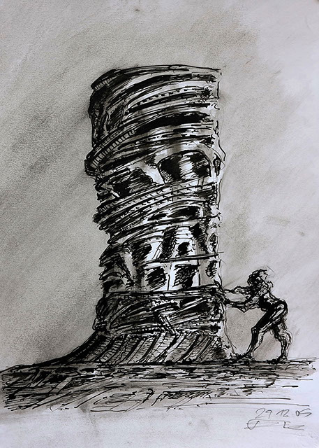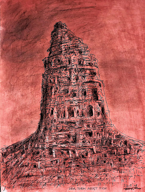 Aus profanen Baustoffen gefertigt, haben Türme durch ihr Streben in die Höhe immer etwas Metaphysisches an sich, denn sie überragen jede Flachheit und horizontale Lebensweise, auf welche sie einen erkennenden Ausblick bieten. Jedoch ist es ihr Schicksal, umzustürzen und dem Erdboden gleich zu werden.